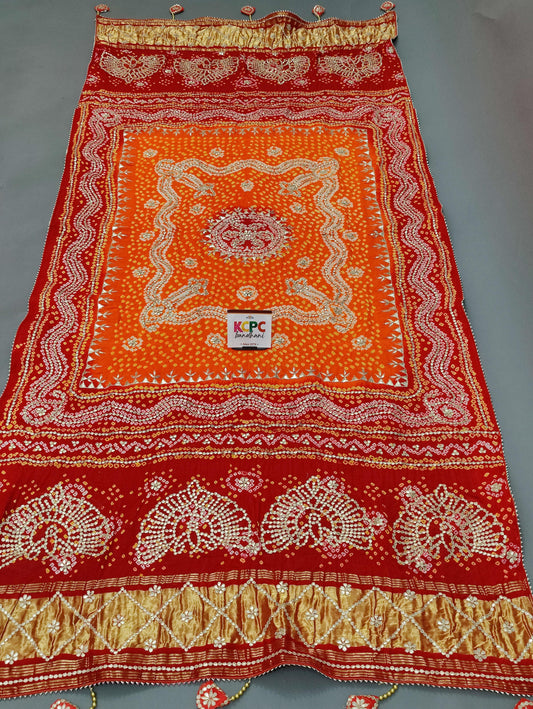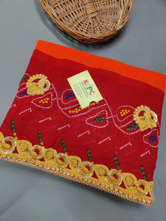 KcPc Pure Georgette Marwadi Chunri Dupatta for Pooja, Traditional Wedding Chunri