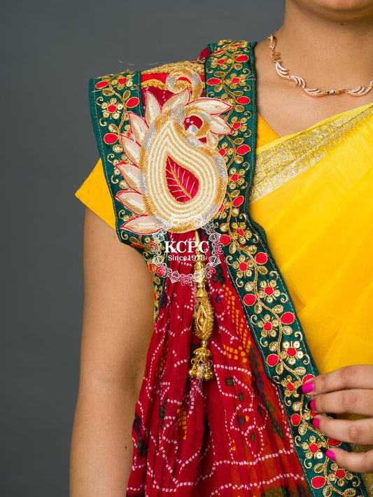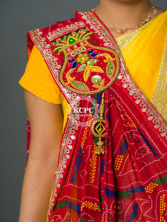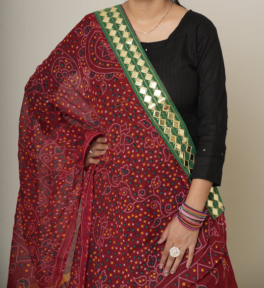 Pure Gaji Silk Handmade Bandhej Gotapatti Work Marwadi Pila Jaipuri Dupatta