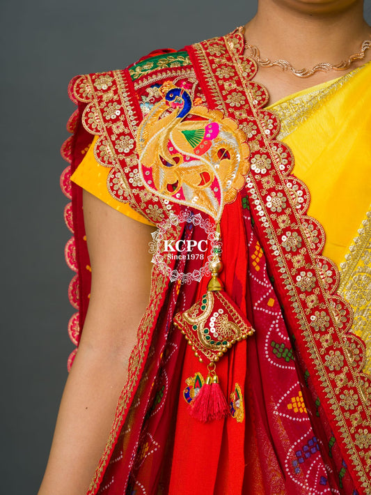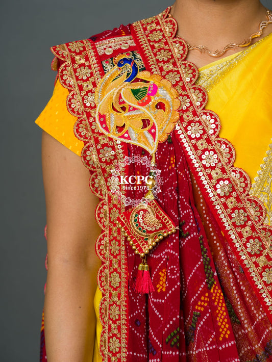 New Pure Georgette Marwadi Pila Dupatta for Pooja, Traditional Wedding Chunri Purpose