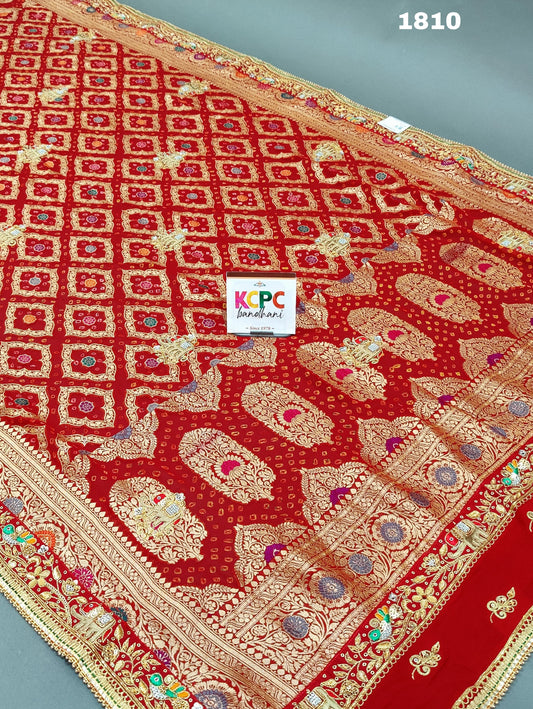 Pure Ojariya RaiDana Bandhej Handwork Zardoji Kolkata Special Marwadi chunri Odhna