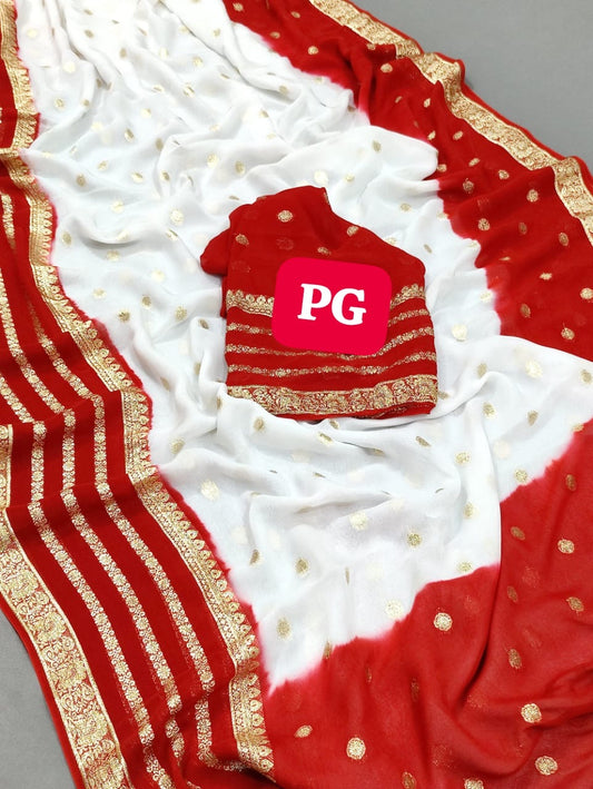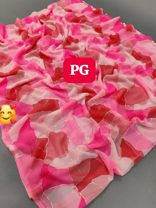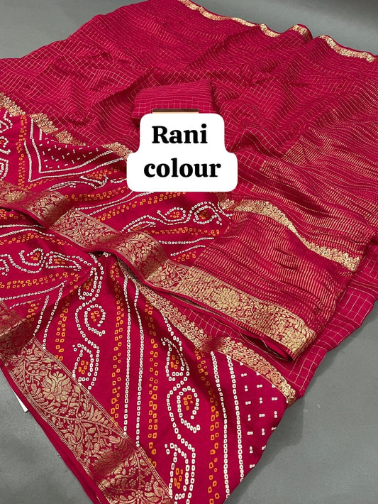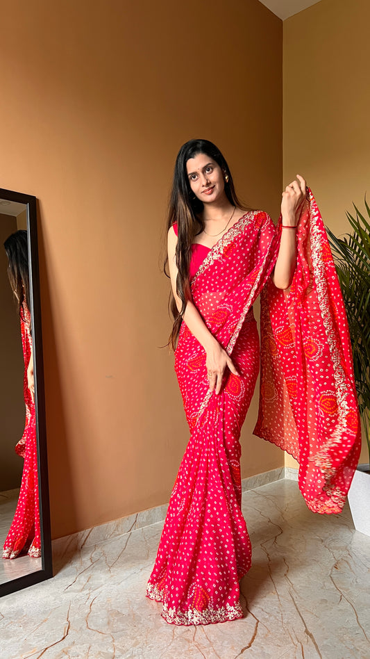 Pink Bandhani Georgette Bandhej Petan Work Cutwork Saree with blouse