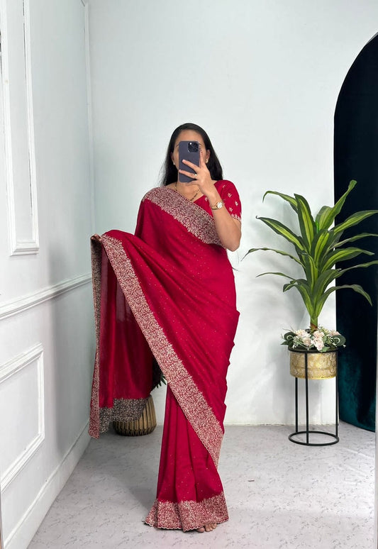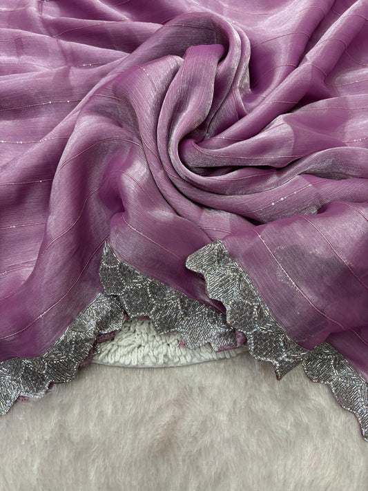 Pure Diamond Chiffon Mirror cutwork Rajwadi saree ♥️