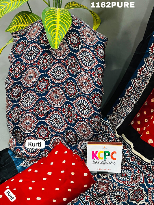 Latest New Launch Modal Gaji Silk Ajrakh Print Suit, KcPc