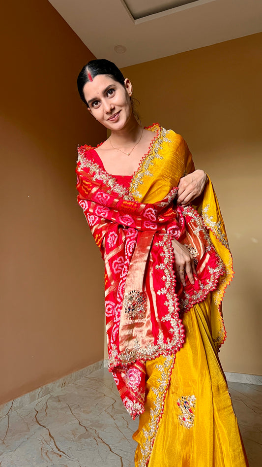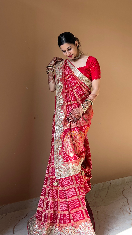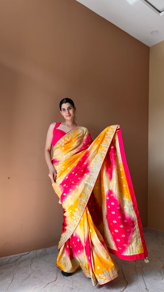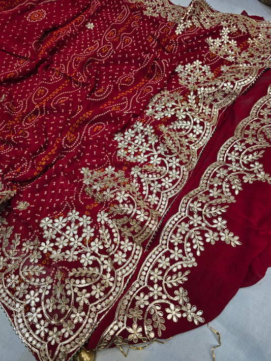 Georgette bandhani Gotapatti saree