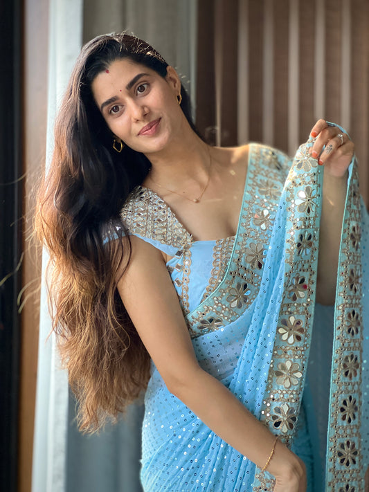 Bollywood mirror work designer saree