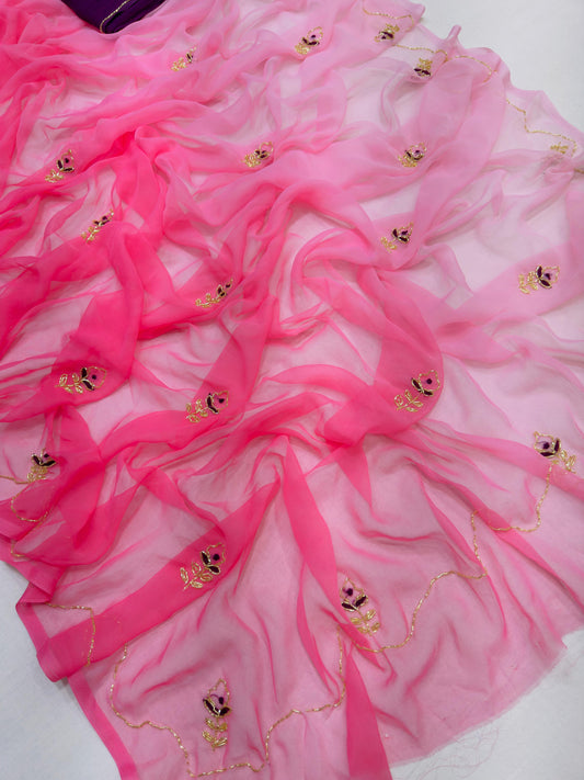 Georgette chikankari lucknowi embroidered saree