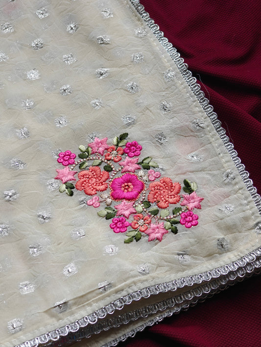 Soft organza white red saree ♥️