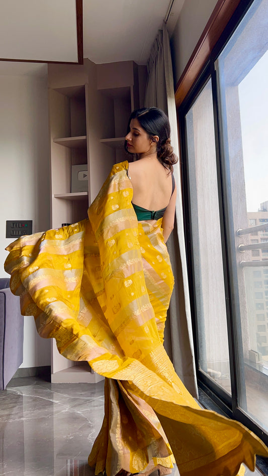 Pure crepe silk tissue zari banarasi weaving