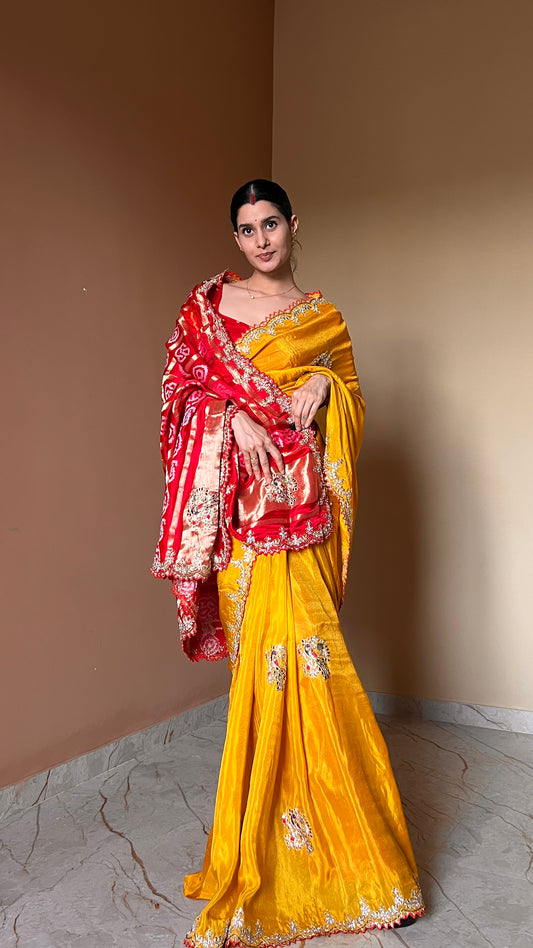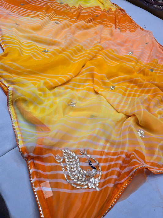 Chiffon leheriya gotapatti saree