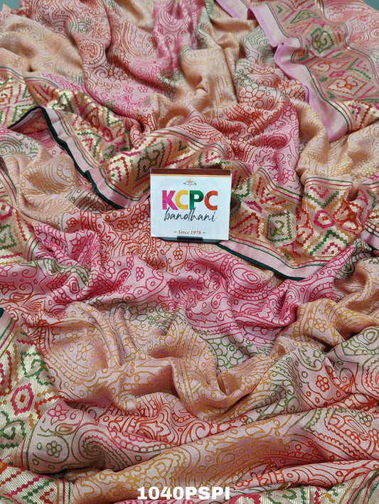 KcPc Originals Pure Meenakari Khaddi Georgette Upada Janglaw Bandhani Neemzari Saree With Blouse
