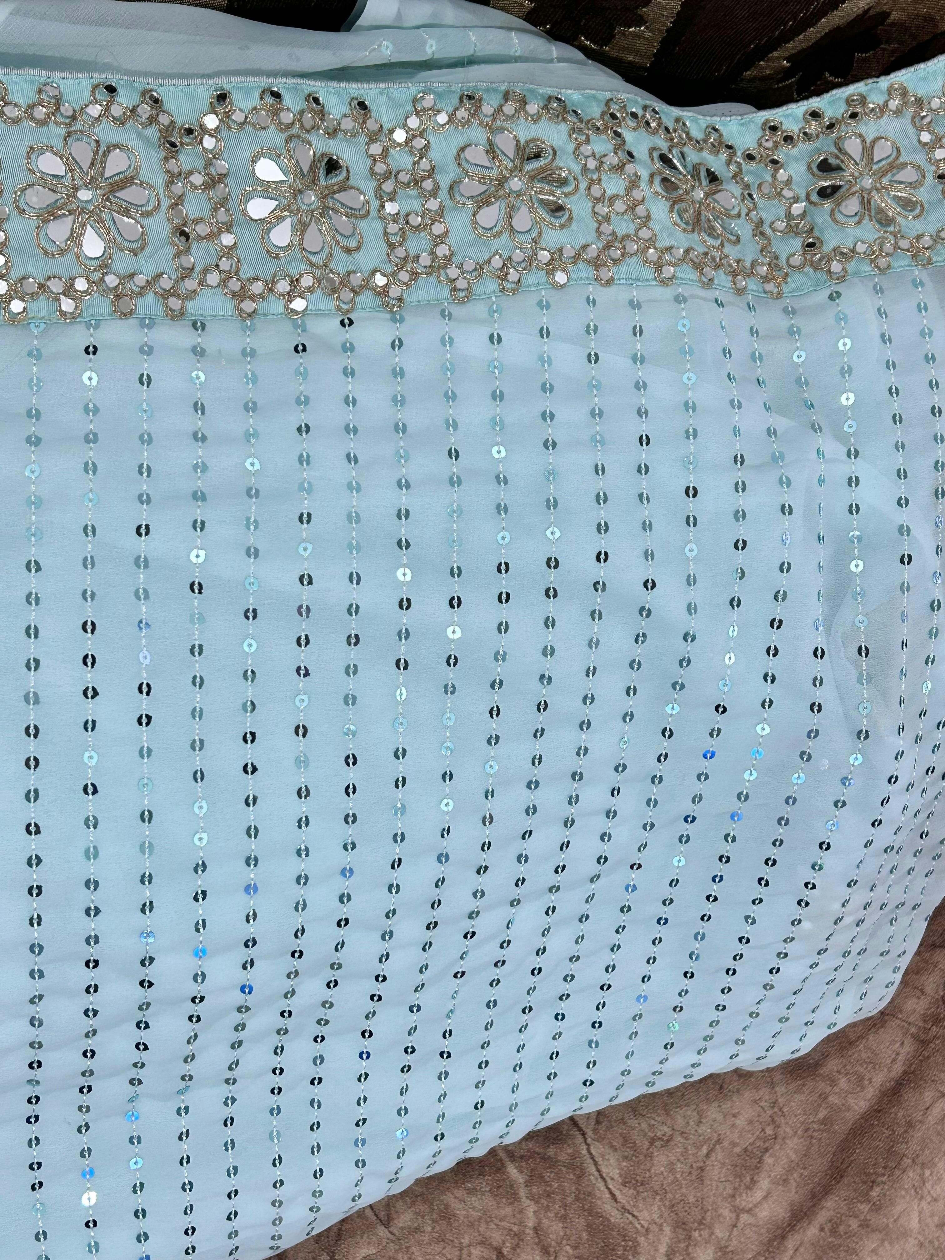 ORIGINAL MIRROR WORK DONE IN LACE BORDER,BLOUSE & SLEEVES
