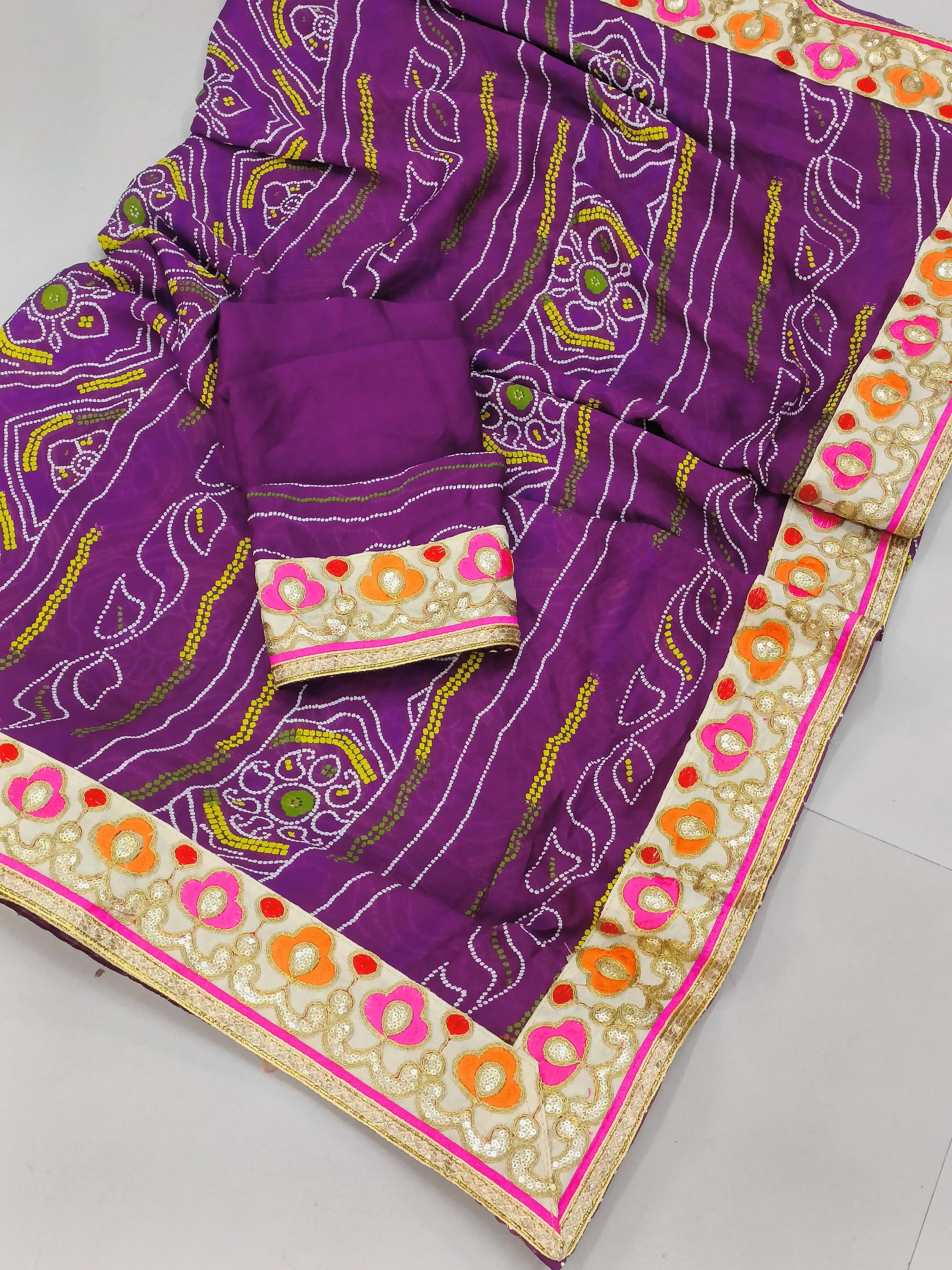 .Moss fabric of bandhej saree