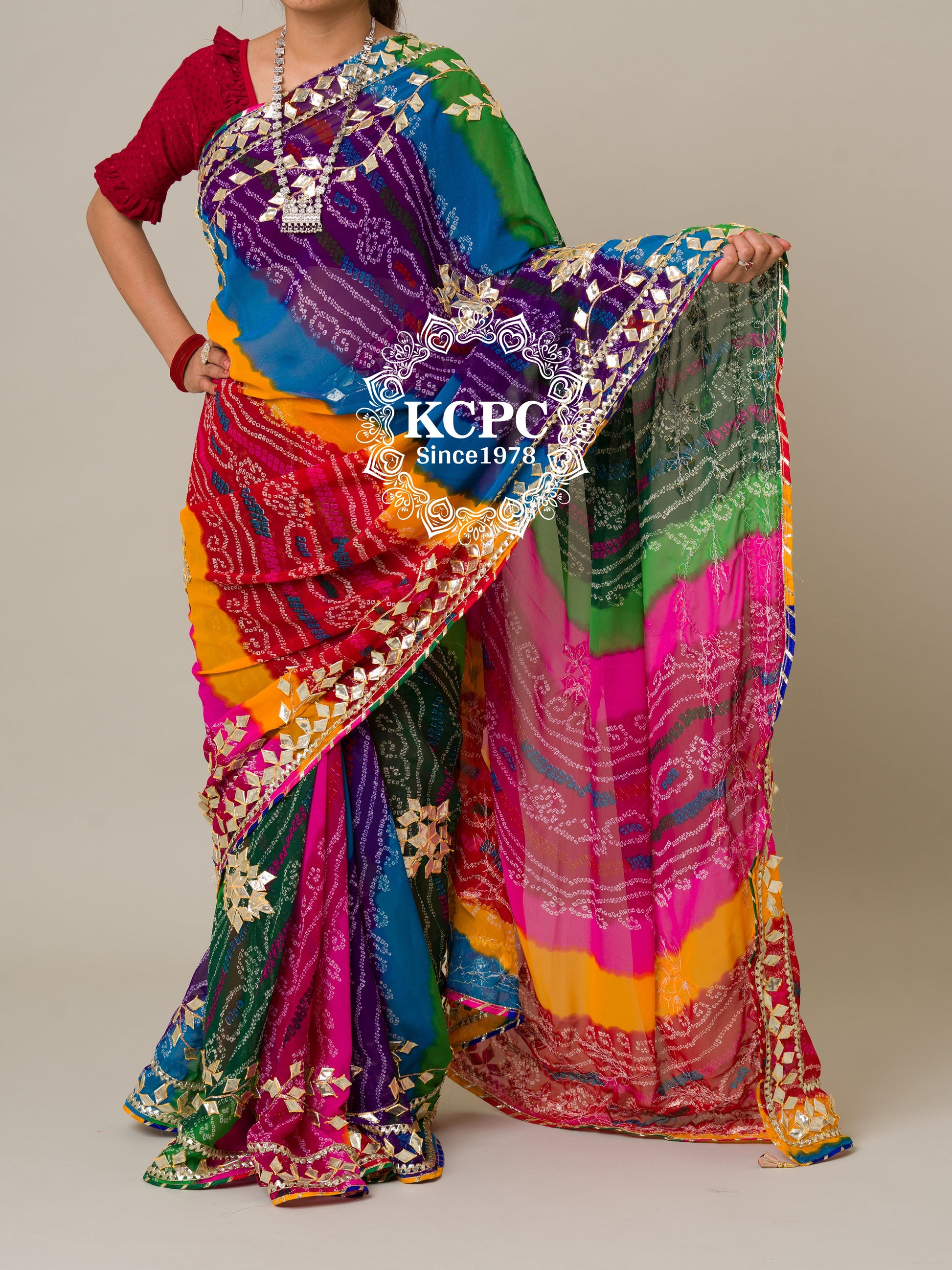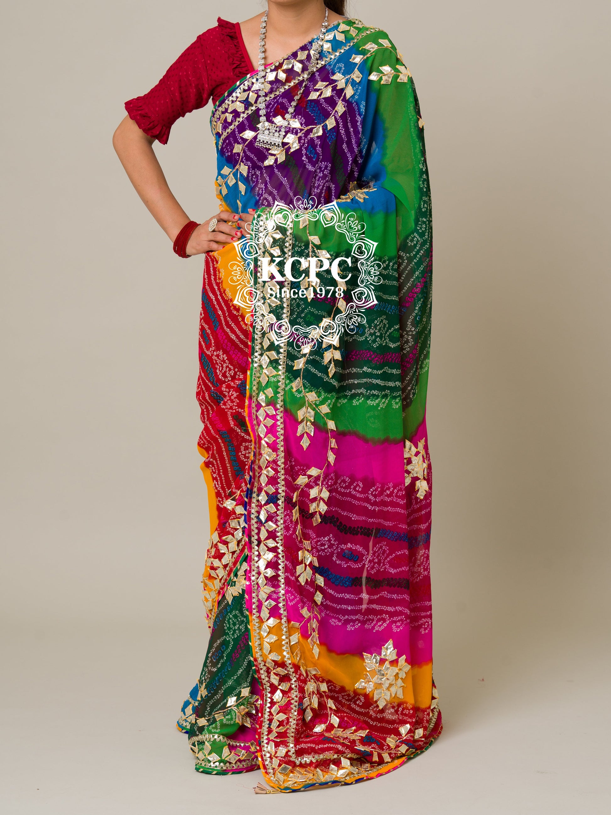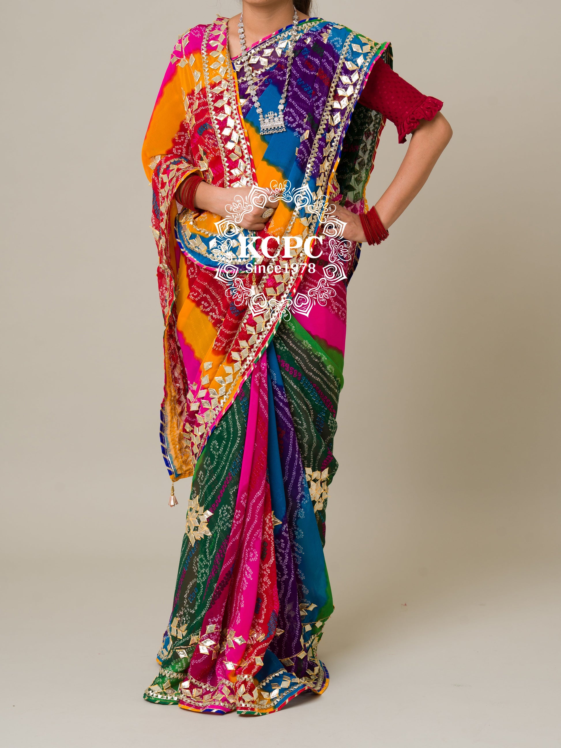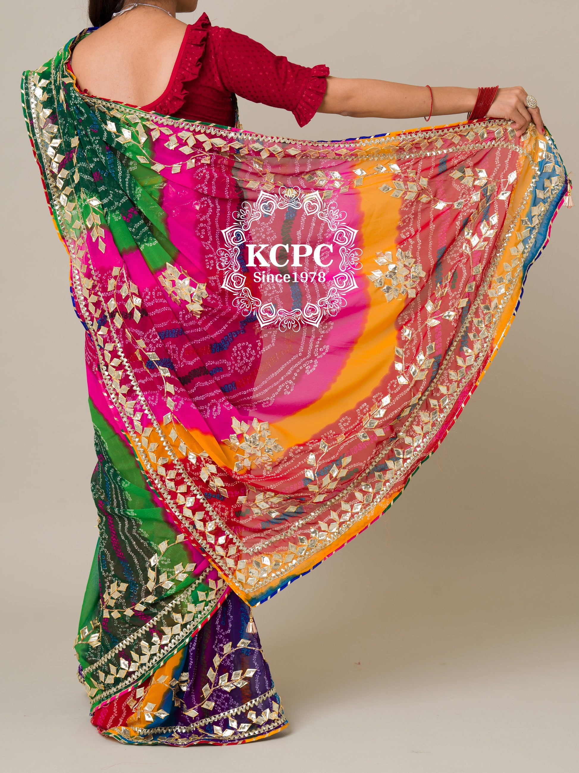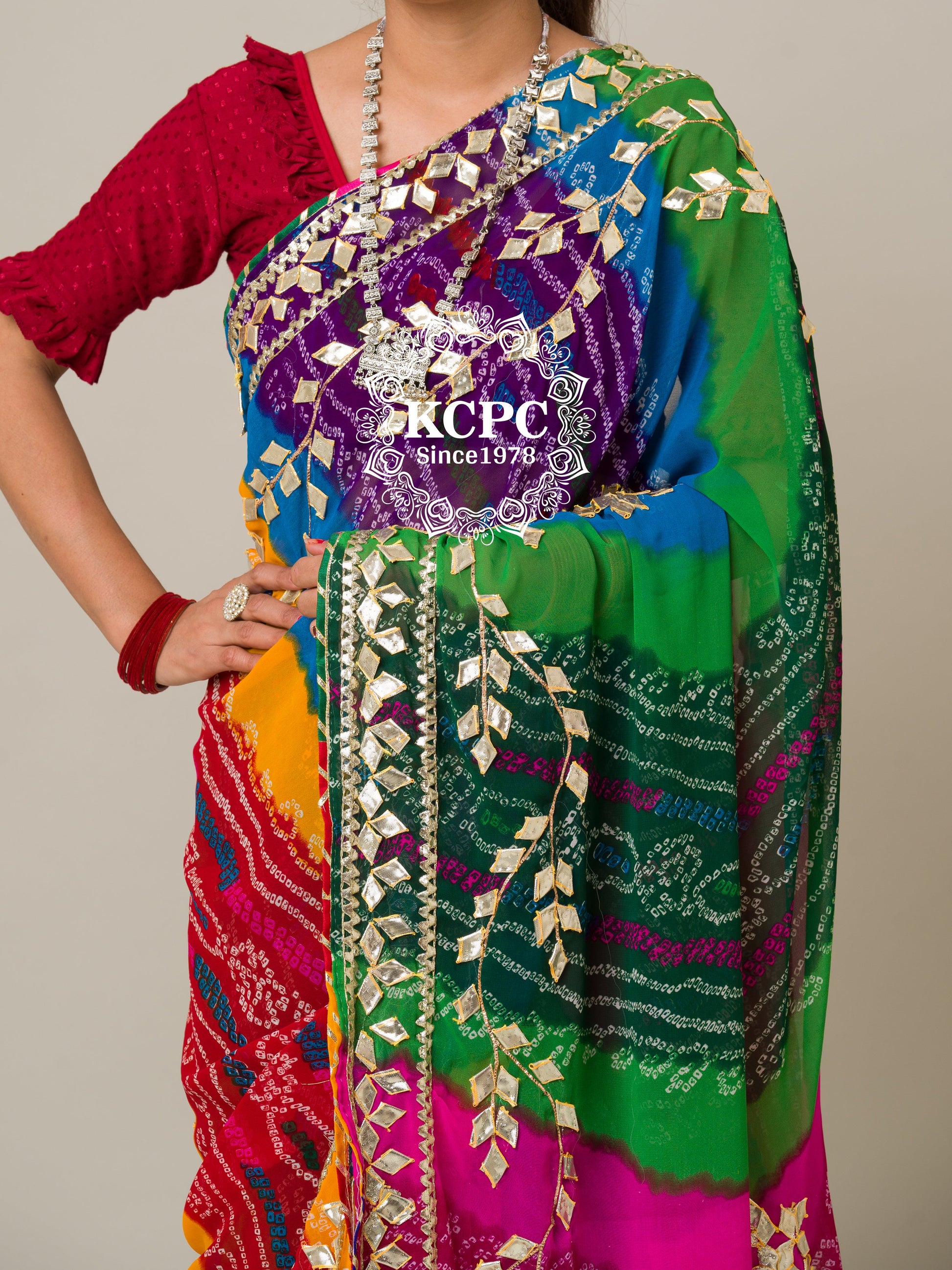 KCPC Special Pure Georgette Multi Colour Bandhani Leheriya Gotapatti Work Saree mhs