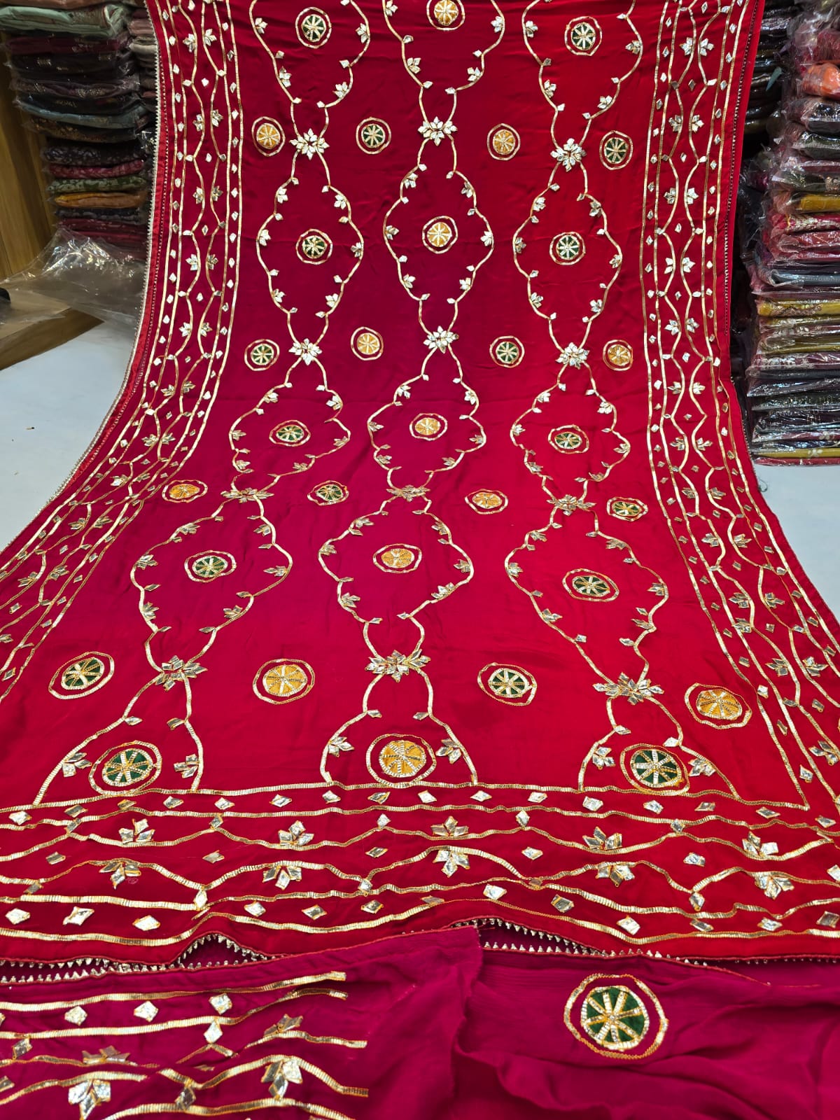 Pure Chinon fabric saree with multi colour die and Pure hand kachha gotta with bizya gotta work border
